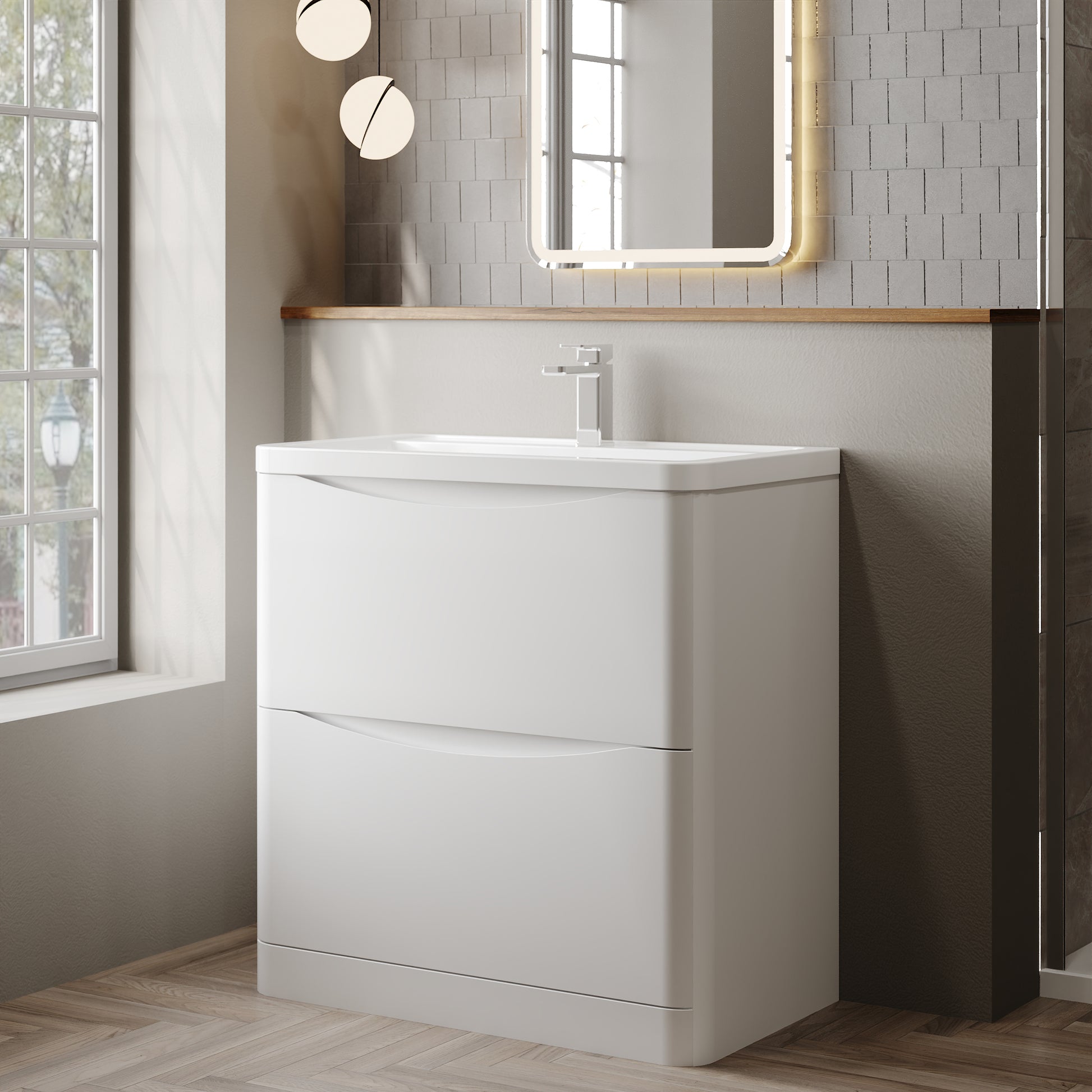 Nuie Lunar 800mm Satin White Floor Standing 2 Drawer Basin Unit