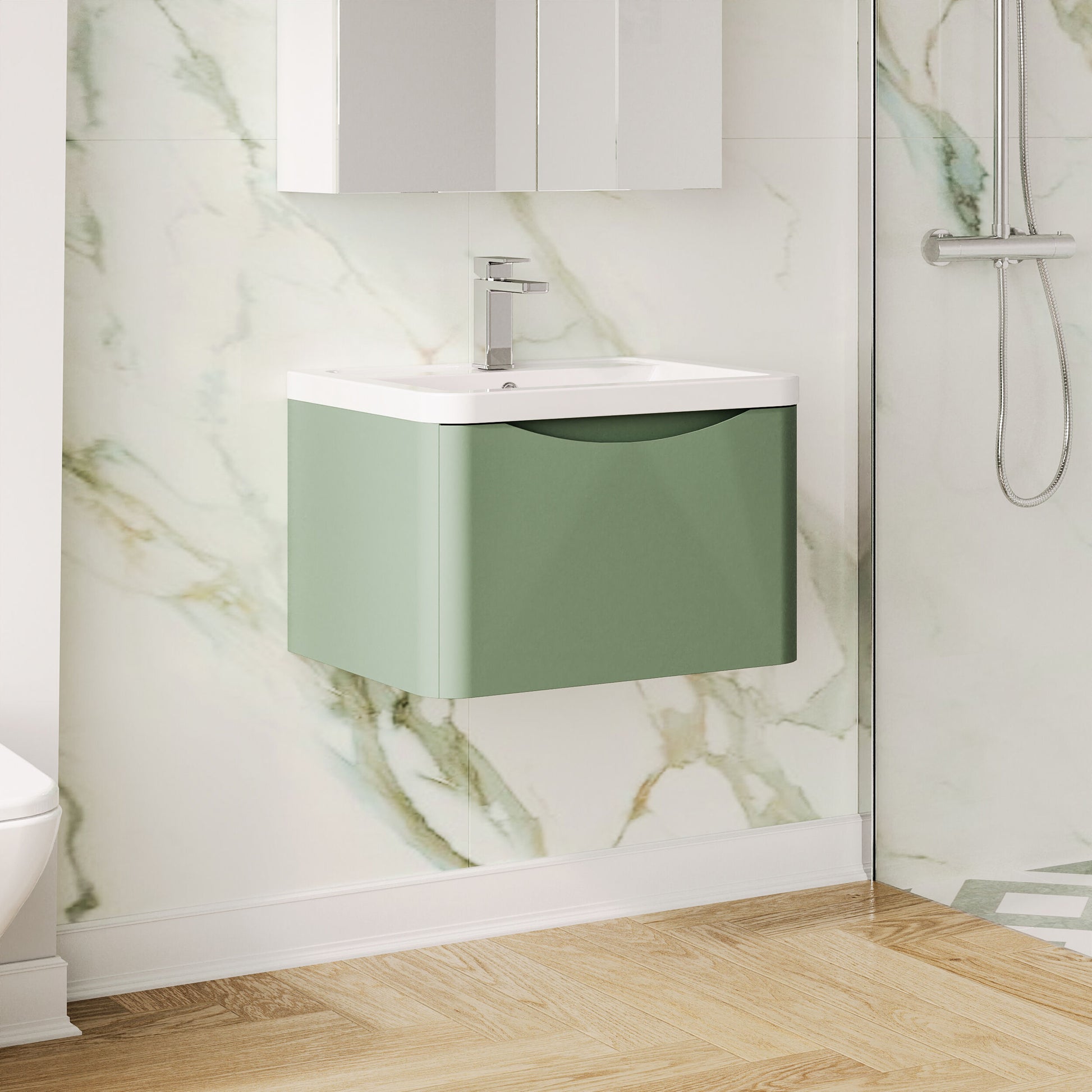 nuie Lunar Wall Hung 1 Drawer Unit & Ceramic Basin, 600mm - Satin Green