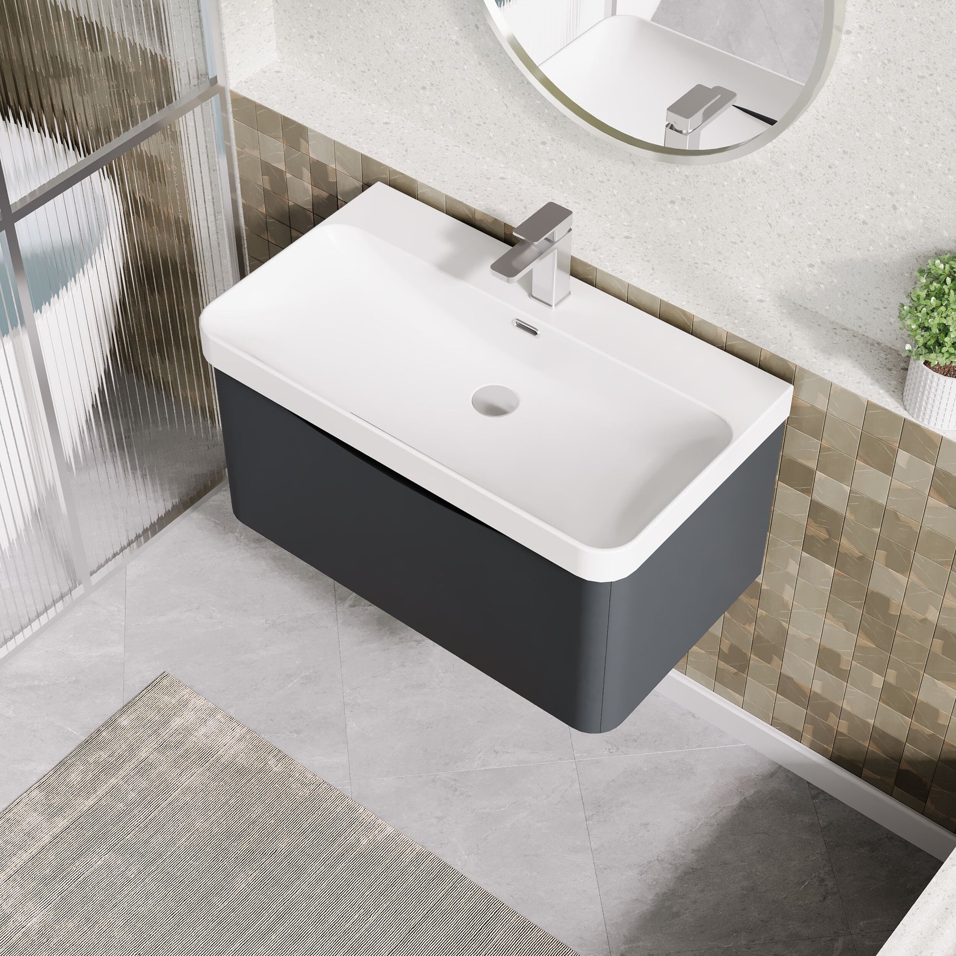 nuie Lunar Wall Hung 1 Drawer Unit & Thin Edge Ceramic Basin, 800mm - Soft Black
