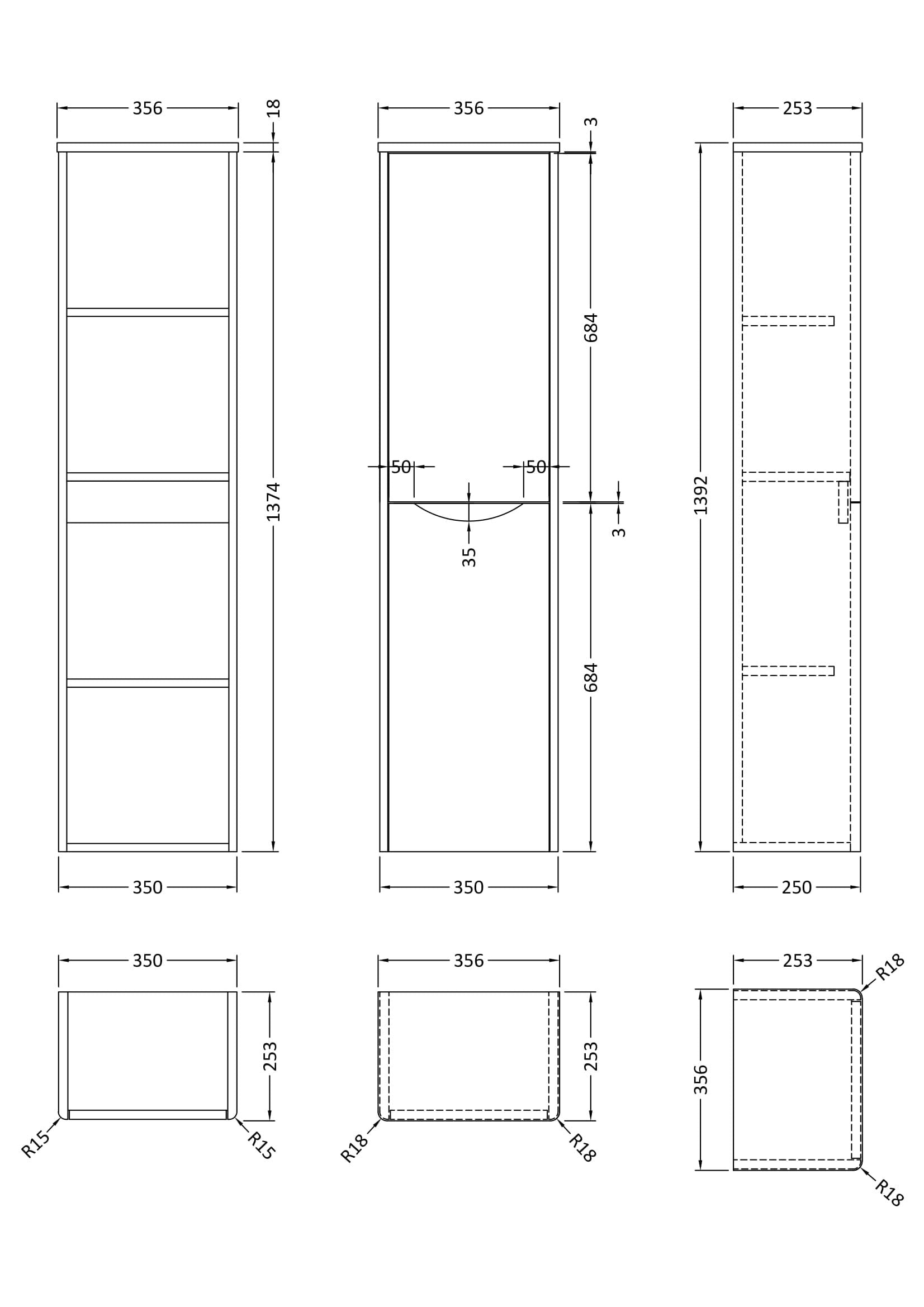 nuie Lunar Wall Hung 2 Door Tall Unit, 356mm - Satin White