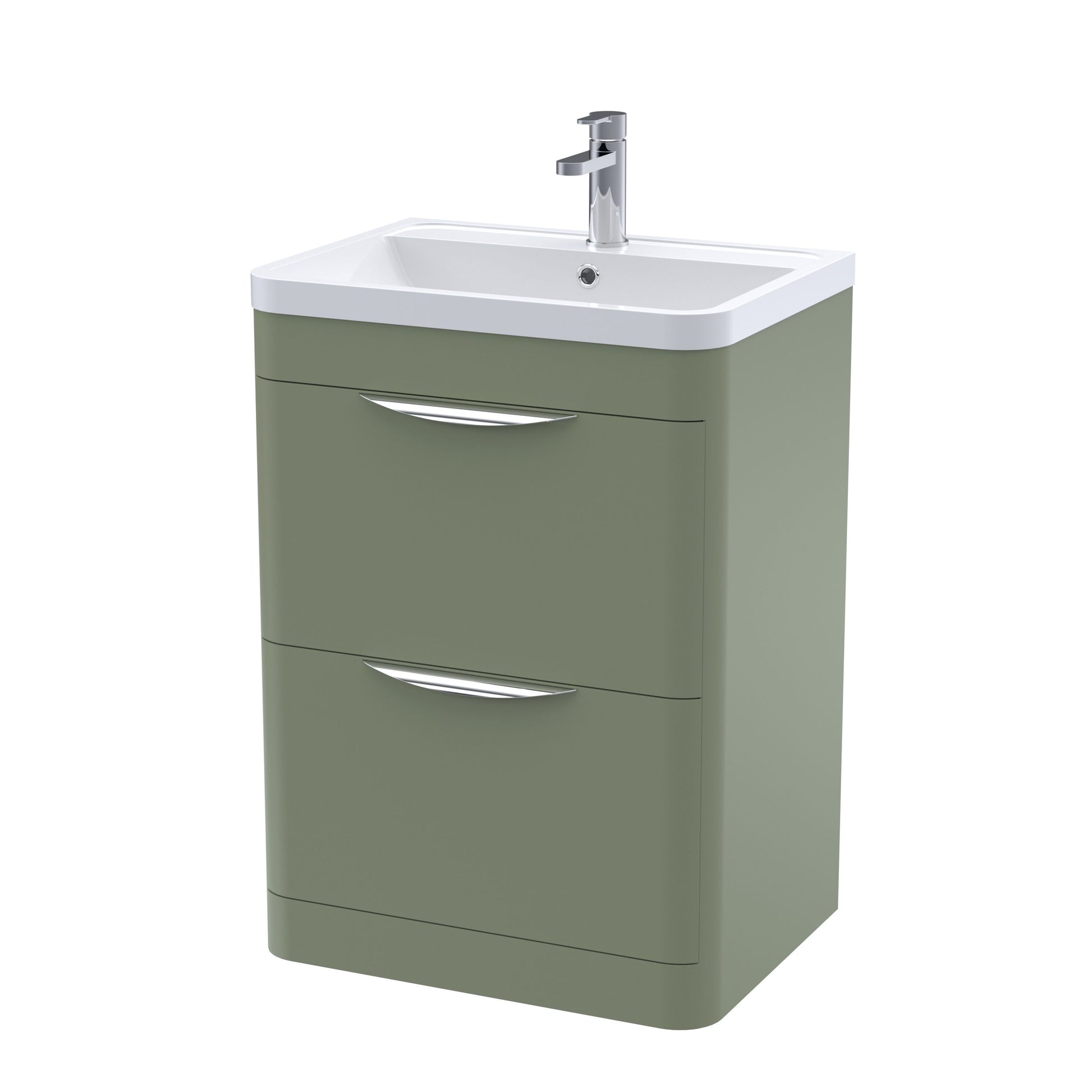 Balterley Wave Contemporary Floor Standing 2 Drawer Bathroom Vanity Unit & Ceramic Basin, Satin Green, 610mm