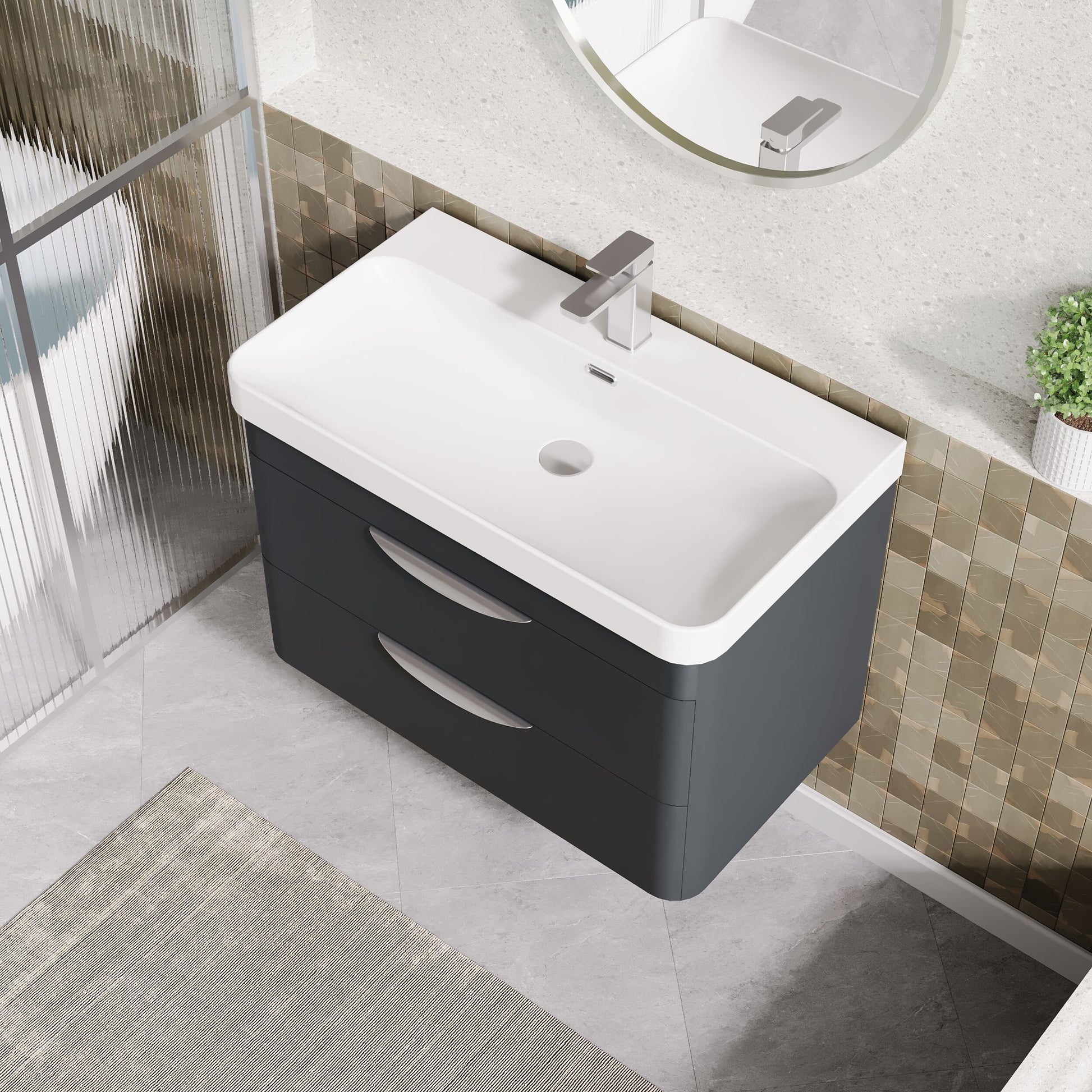 Nuie 800mm Soft Black Wall Hung 2 Drawer Vanity Unit with Basin