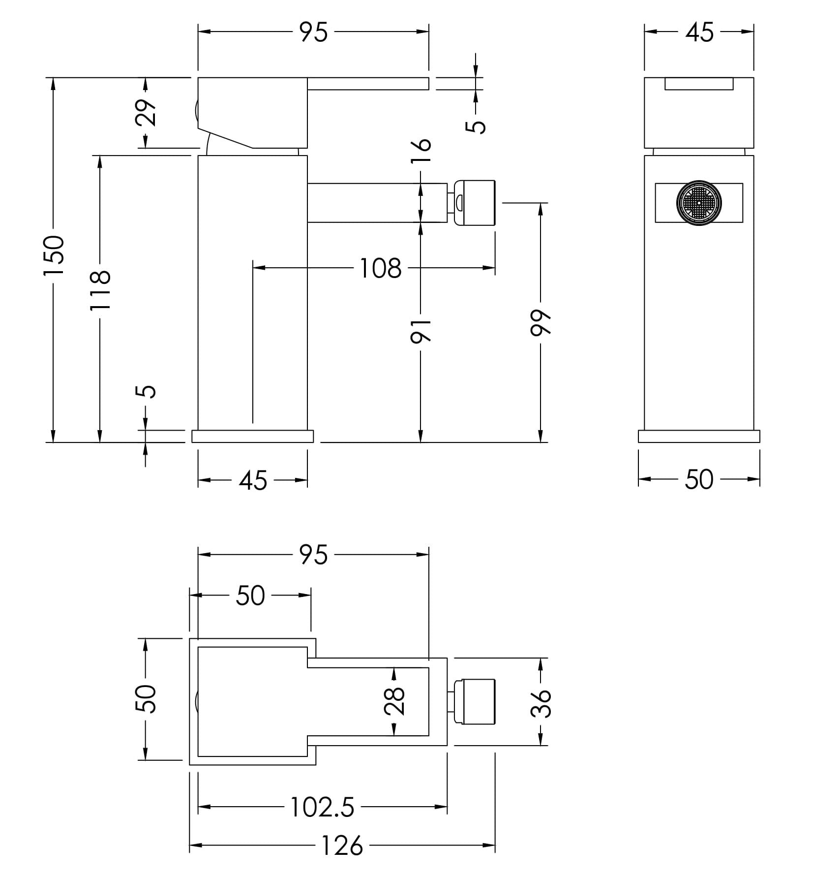 Sanford Mono Bidet Mixer With Pop-up Waste