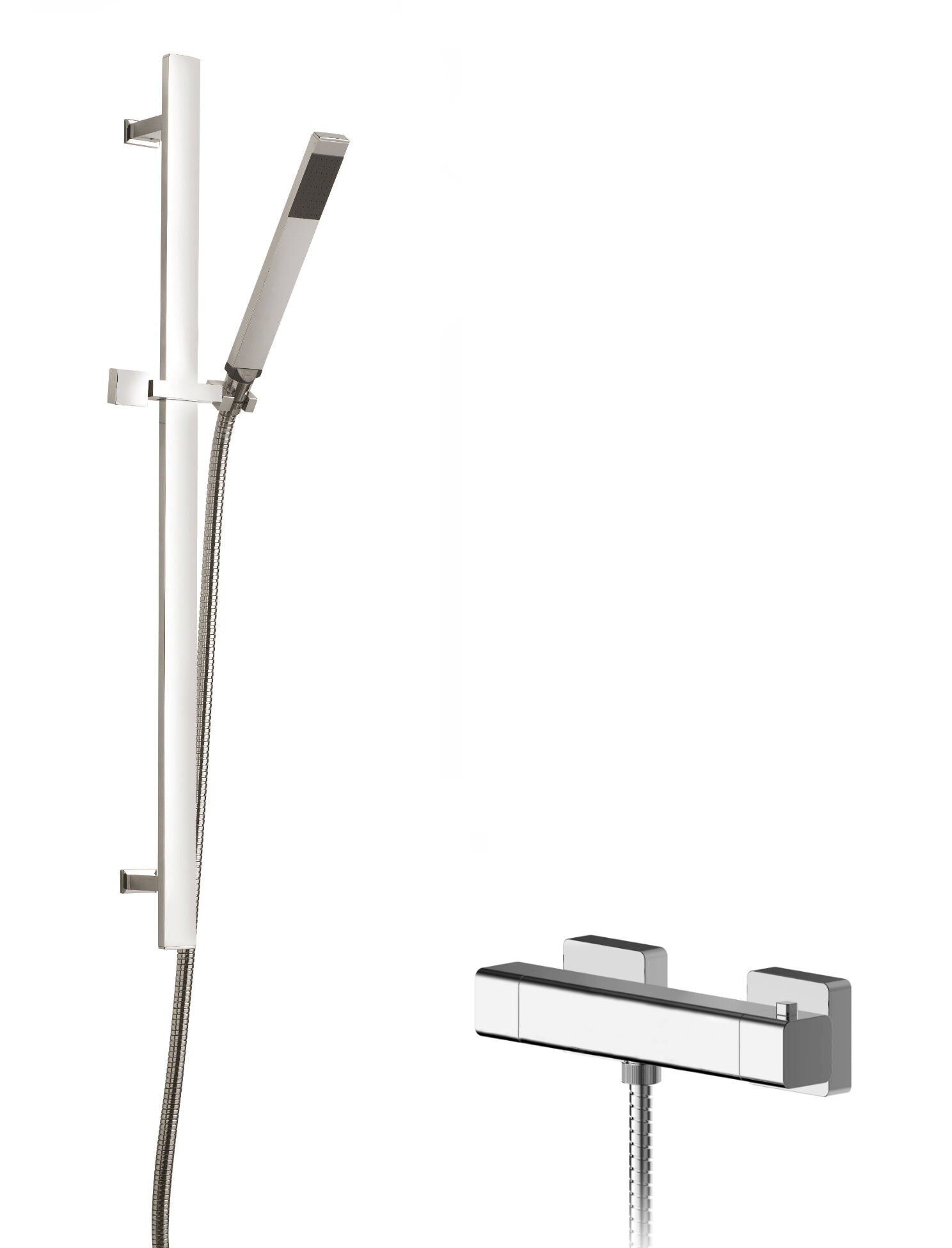 nuie Thermostatic Square Bar Valve & Single Function Slide Rail Shower Kit - Chrome