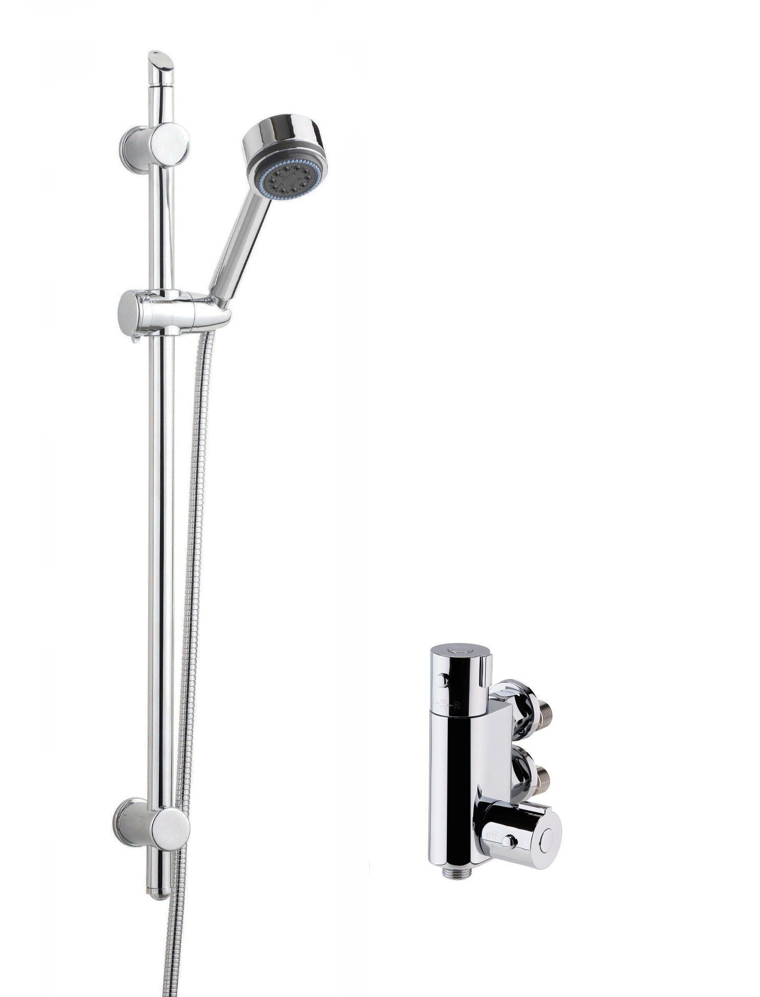 nuie Thermostatic Vertical Round Bar Valve & Multi Function Slide Rail Shower Kit - Chrome
