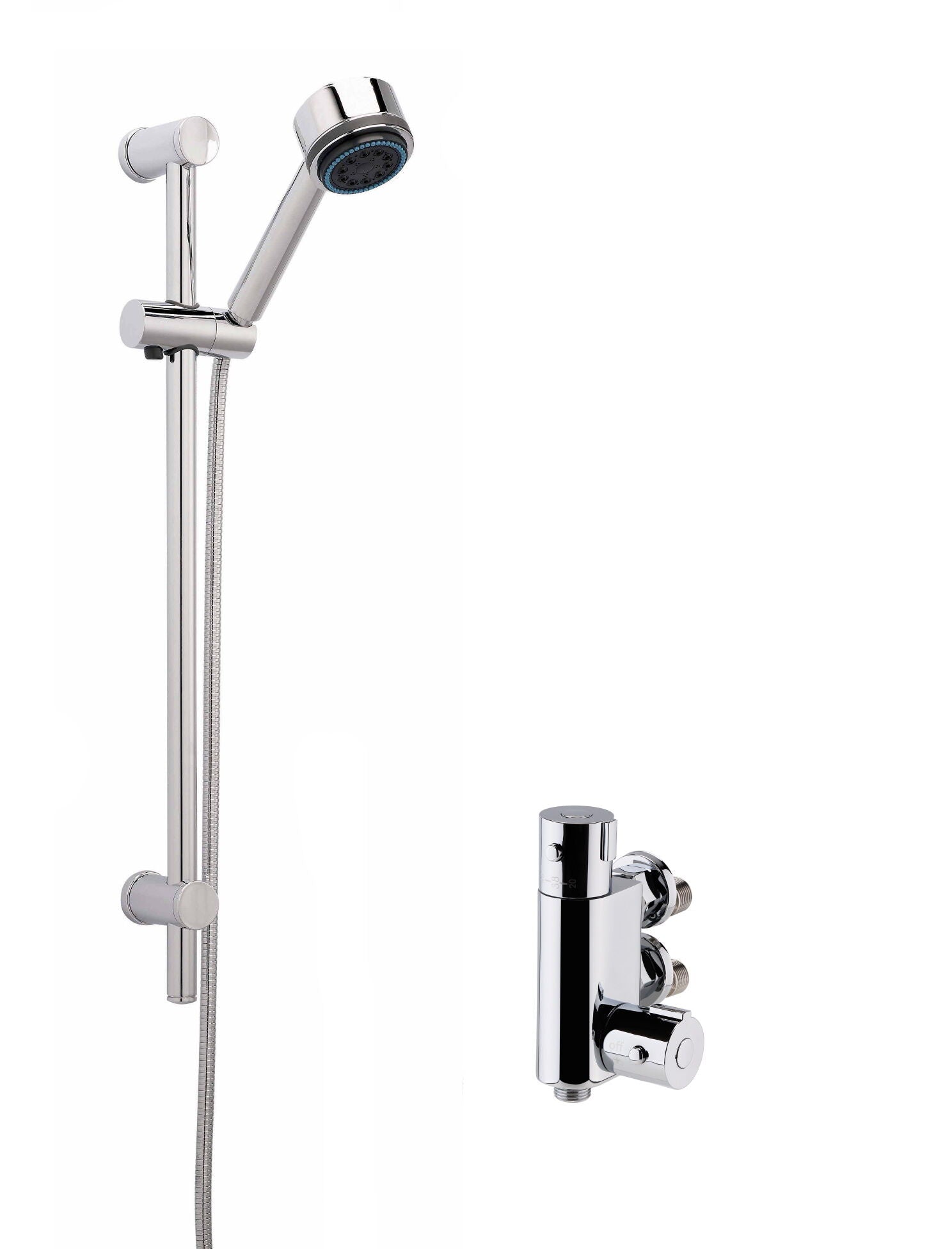 nuie Thermostatic Vertical Round Bar Valve & Multi Function Slide Rail Shower Kit - Chrome