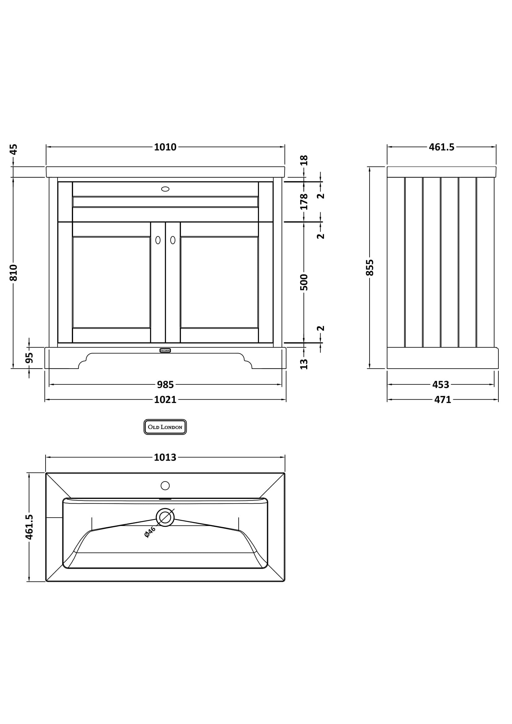 Old London 1000mm 2-Door Unit & Contemporary Fireclay Basin 1TH