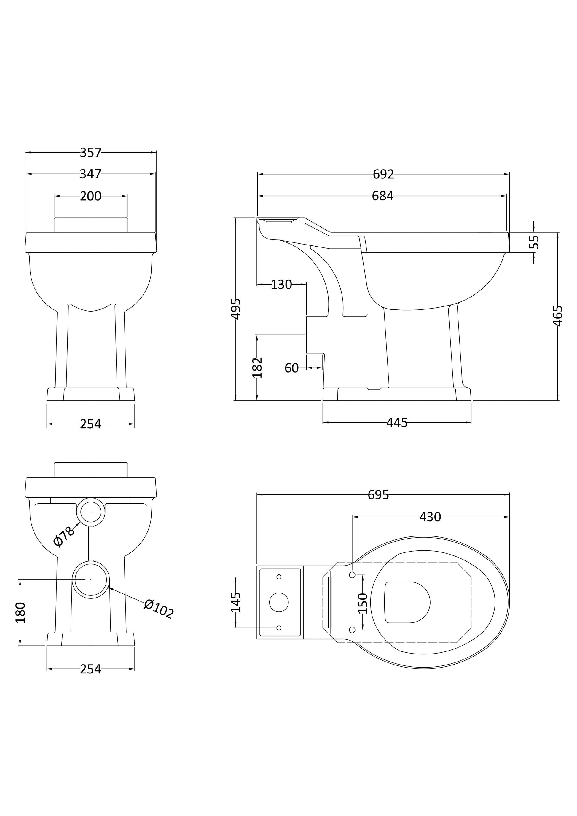 Old London Richmond Comfort Height Toilet Pan Close Coupled Excluding Seat