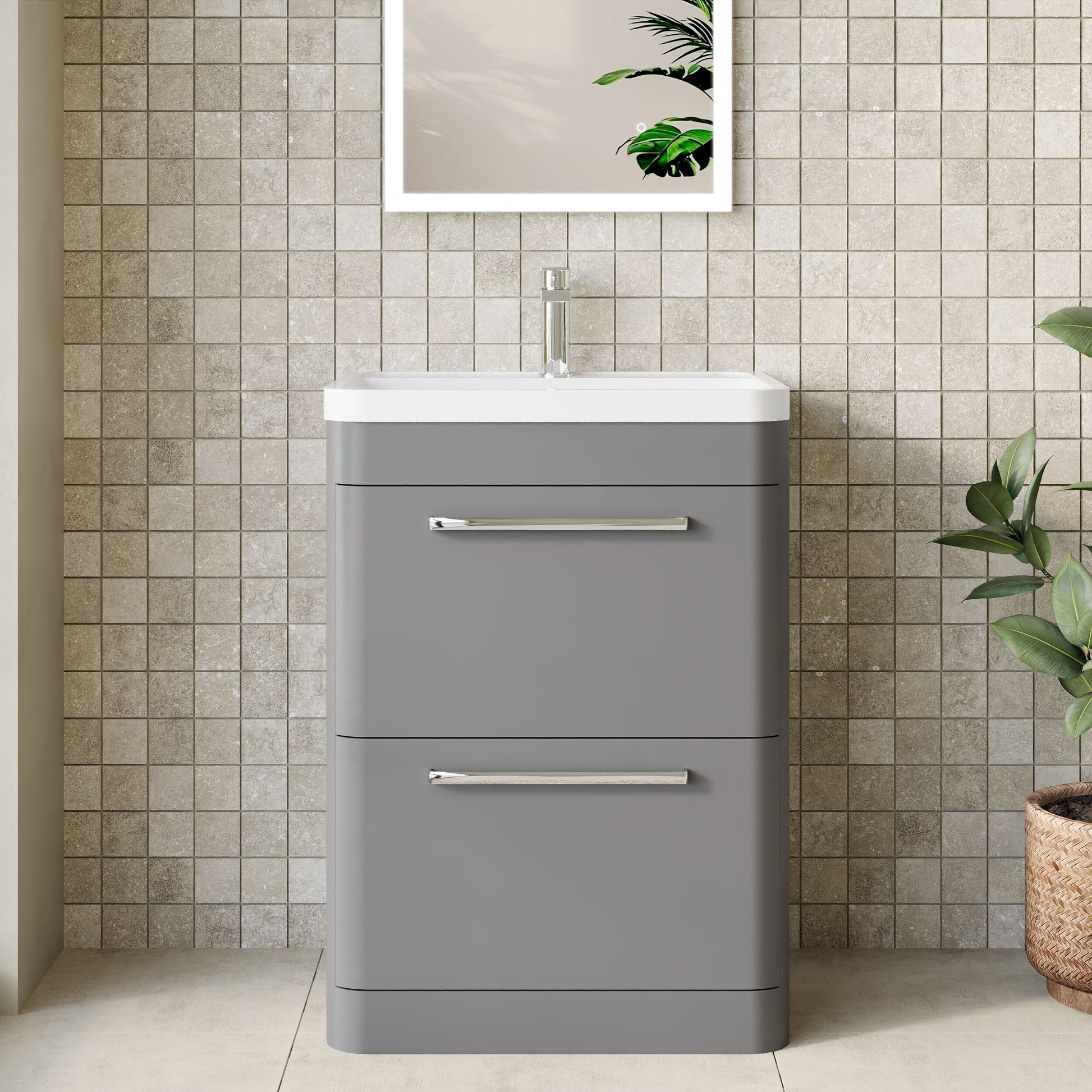 Hudson Reed Solar Floor Standing 2 Drawer Vanity Cabinet 600mm - Cool Grey