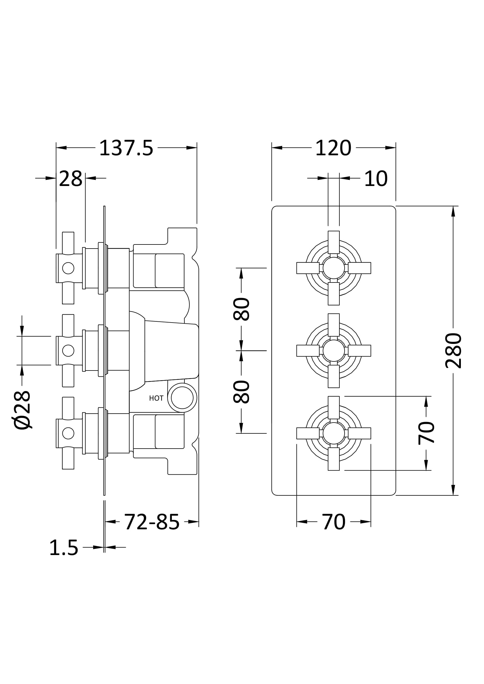 Hudson Reed Tec Crosshead Triple Thermostatic Shower Valve With Diverter - Brushed Brass