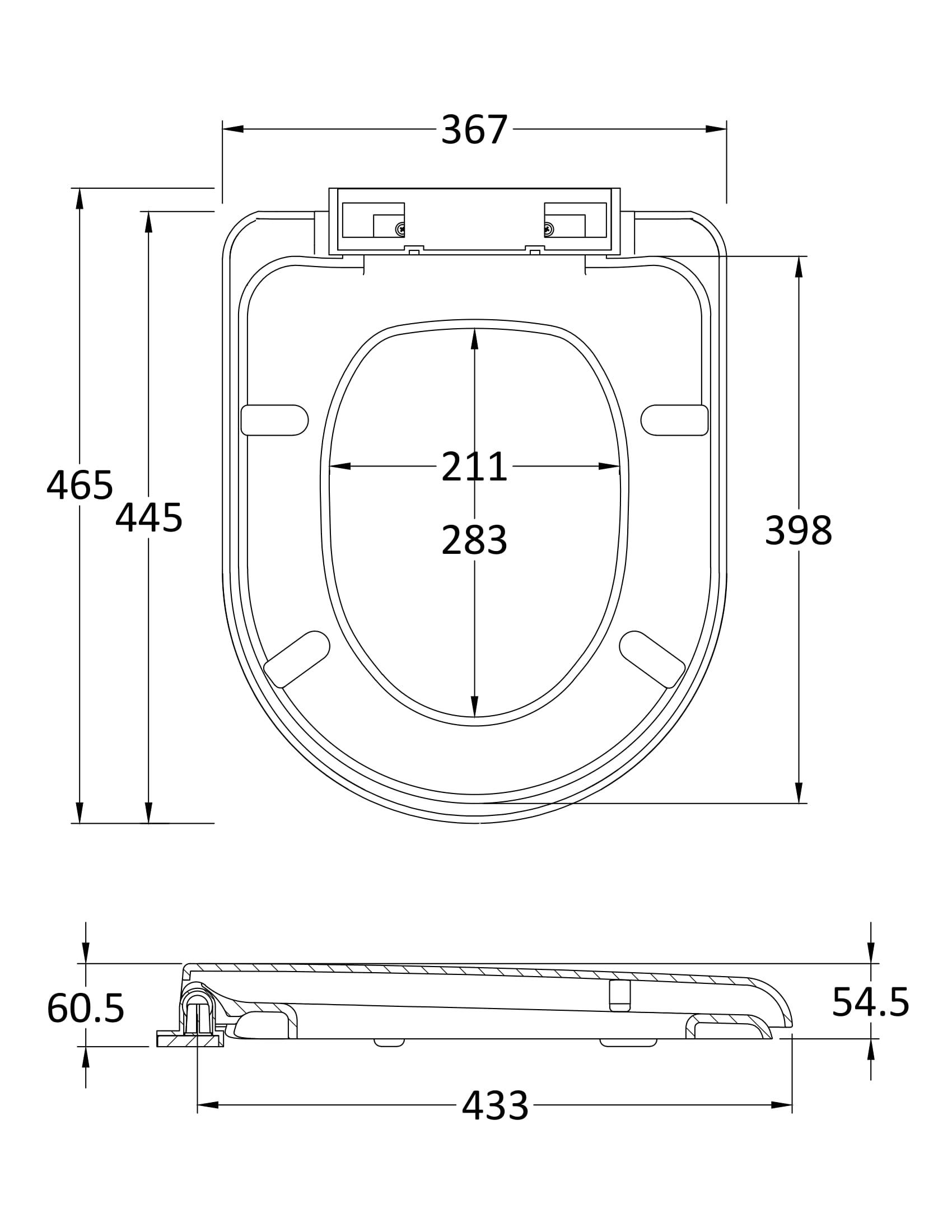 Nuie D-Shaped Soft Close Toilet Seat With Top Fix Hinge