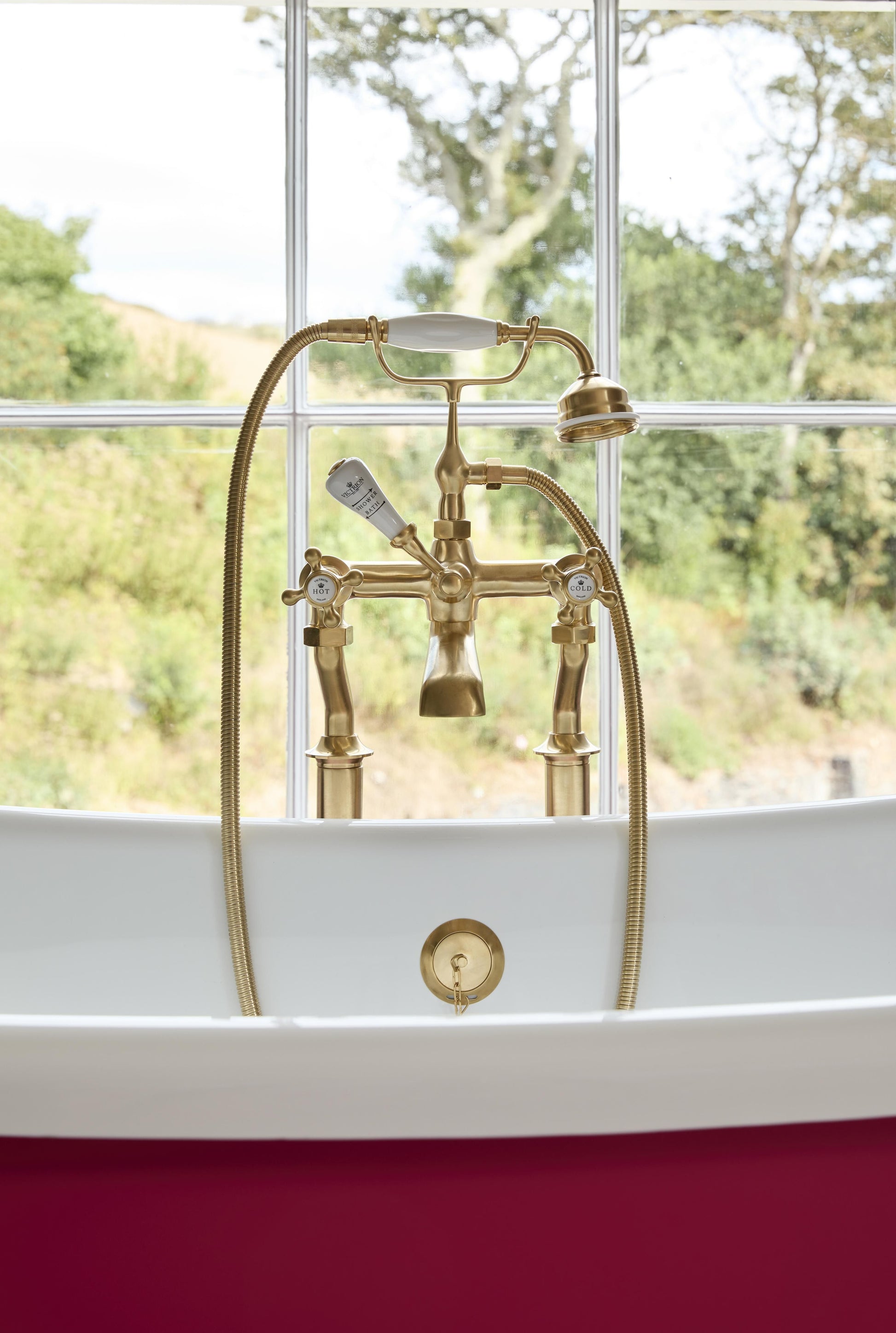 BC Designs Victrion Deck Mounted Crosshead Bath Shower Mixer - Brushed Gold